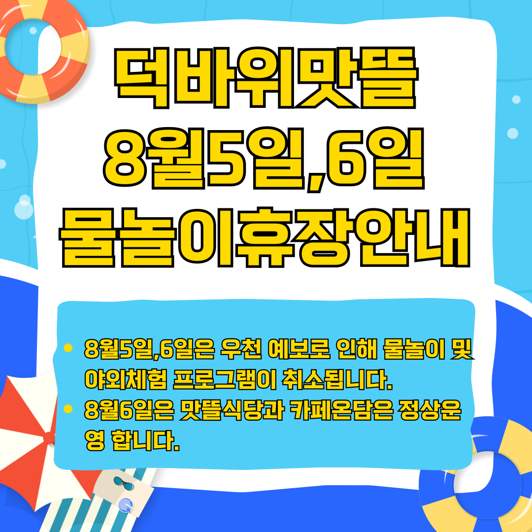 8월8일(금) 물놀이 및 야외체험프로그램 정상운영